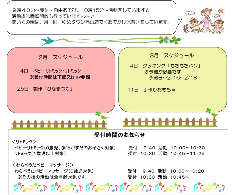 クラスあそび・給食試食会(試食会は予約制) |