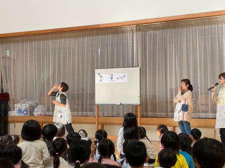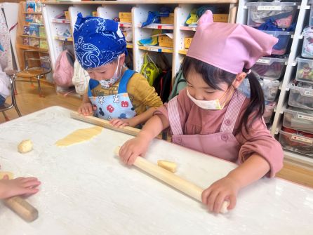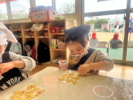 | | | | + あんぱんまん広場にダダンダン登場!★あひるぐみ | | 2025/11/14 |  | アンパンマン広場に、ダダンダンの新しい遊具がきました! みんな大好きで外に出た瞬間大興奮!!! すべり台を滑ったり、ダダンダンのトンネルをくぐってみたり、周りを落ちないように渡ってみたり、とても楽しんでいました(^▽^)/ これからもたくさんあそんでいこうね! n.m | | | | + うさぎ☆クッキングをしたよ!! | | 2025/11/13 |  | みんなでクッキーを作りました🍪 生地から作ってバターを「これチーズじゃないん?」と言っている姿があり、バターと教えてもらったら「え、バター!?」と驚いていました”(-“”-)” 生地も綿棒で上手に伸ばしていましたが、伸ばしすぎて型を取るときに「これってどうやってとるの〜」と頑張って崩さないようにとっていましたよ(^^♪ みんなとっても上手でかわいいクッキーの完成していました!! 午後のおやつで出てきて友だちと見せ合いっこしながら、おいしそうに食べてました☆ おいしいクッキーができてよかったね♪