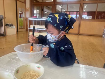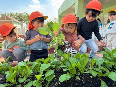 | + 小松菜クッキング//りす | | 2025/11/18 |  | 1ヶ月ほど前にみんなが種をまいた小松菜が、収穫の時期を迎えたので、収穫をしてごま和えを作りました。 ごまをすりすり、調味料をまぜまぜ、最後に小松菜と和えたら完成です。