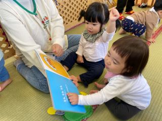 k.m | | | | + 絵本見るの上手だね! | | 2025/11/14 | | 絵本が大好きなひよこぐみさん!! 先生が絵本を手に取ると追いかけてきて 先生の前にちょこんと座って「早く読んでー!!」と 目をキラキラさせてます(*^_^*)