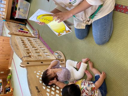 最近は言葉の理解がよく出来るようになり 先生が読んでいるのに合わせて「トントントン」と言いながら絵本を叩いてノックしたり 「いないいない」と顔を隠したりして参加してくれるようになりました♪ これからも子どもたちと一緒に様々な絵本に触れることを楽しみたいと思っています♡ M,A
