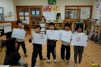 次回はベビーリトミック・リトミックです。受付時間が異なりますのでホームページをご覧ください。音に合わせて体を動かして楽しみましょう♪ | | | | + 大きくなったらなにになりたい?★らいおんぐみ | | 2025/11/17 | | 勤労感謝の日の話をした後、子どもたちに「大きくなったら、どんなお仕事をしてみたい?」と聞いてみて、やってみたいお仕事の絵を描くことになりました。 何を描こうかな?どうやって描こうかな?と考える姿は、とても楽しそうでしたよ(*^▽^*) ビッグの店員さん、ペットショップの店員さん、学校の先生、パパと同じお仕事などなど、色々なお仕事がたくさん出てきました! 今度は、お仕事にちなんだ製作もしていきたいなぁと思っています!