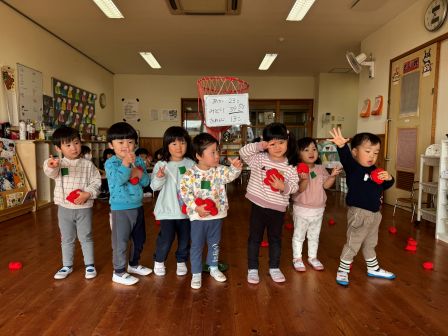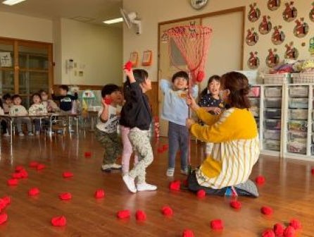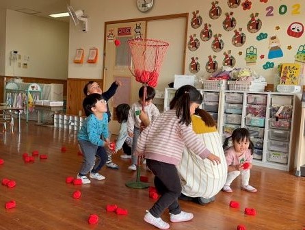 o.k | | | | + 玉入れしたよ!りす組 | | 2026/02/04 |  | 初めて、玉入れ対決を3グループに分かれてしました。 自分のグループの時は全力で球を投げること楽しみ、他のグループの時は全力で「○○グループ頑張れ」と応援しているいつも元気なりす組さん! 残り2か月も元気いっぱいで楽しもうね(^▽^)
