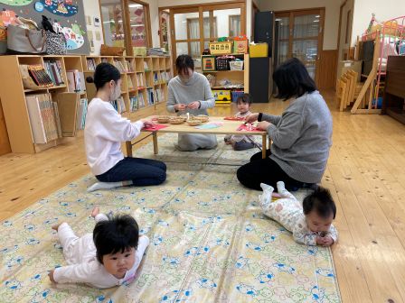 | + なでなで〜 | | 2026/02/27 | | 年始頃からお友だちに興味を持ち始めたひよこ組さん、お友だちと一緒に遊んで楽しそうにしている姿が増えました。この頃はお友だちが泣いていると、近くに行って頭をなでて、励ましてくれます。!すてきだなと感じました!残りの1か月もみんなで楽しく過ごしたいと思います M、A | | | | + わくわく!授業体験★らいおん組 | | 2026/02/26 |  | 大津野小学校の先生がらいおん組に来て、小学校ではどんな事をするのかなと授業をしてくれました。 挨拶の練習をしたり、一日の流れを教えてもらったり、線のなぞり書きをしたり。最初は少し緊張気味なみんなでしたが、少しずつ手が挙がるようになり先生に褒められると、とっても嬉しそうにしていました(*^-^*) 小学生になるまであと一か月、わくわくな気持がより増えたらいおん組さんでした♪ H/R | | | | + 製作「ひなまつり」☆子育てサークル | | 2026/02/25 |  | 今回は製作「ひなまつり」をしました。小さなお友だちはお母さんが素敵なひな人形飾りを作ってくださいました。(*^^*)自分でできるお友だちはお顔を描いたり、小さなシールを一生懸命貼ったりして可愛いいひな人形飾りができましたよ♪お家に飾ってお祝いしてくださいね(*^^*)