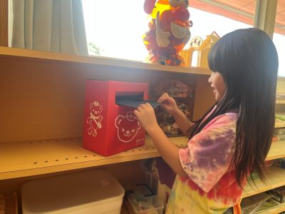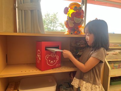 I.M | | | + ゆうびんやさん、はじめました★らいおん組 | 2025/09/13 |  | らいおん組の部屋に小さなポストがやってきて、郵便屋さんがはじまりました! 「どうやってだしたらいいの?」「こんなものはポストに入れてもいいの?」などなど、みんなでお話をして約束事を考えました(*´▽`*) 早速、ポストの中にお手紙が集まってきています☆彡 何を書こうかなと楽しそうです!! 色々な形でお友だちや先生とのやり取りを楽しんでもらえたらいいなぁと思っています!!