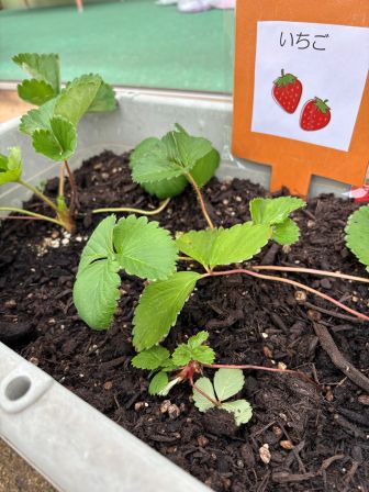 k^y^k | | | | + いちごの苗植え ☆ うさぎ組 | | 2025/10/16 |  | 今日は食育でいちごの苗植えをしました。 みんないちごは大好きなので、「やった〜!イチゴだ〜!!」と言って大喜びでした。 はじめに、いちごの苗の説明をしっかり聞いてからプランターの所に。 「そお〜っと持ってね」と言われると、落とさないようにしながらそお〜っと。土をかけてあげるのもすごく優しい手つきでしていました。 みんな成長をとっても楽しみにしています。 T/R | | | | + がんばった運動会@ | | 2025/10/16 |  | 10月11日(土)に2〜5歳の運動会がありました。 天気も良く、運動会日和となりました。 4,5歳の和太鼓からスタートし、みんなの元気な歌声、楽しく体操したり、運動したりする姿はかっこよかったです。 平均台や前回りが怖くてできなかった練習も、少しずつ出来るようになり、本番は自信満々で見てもらうことが出来ました。