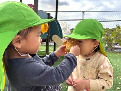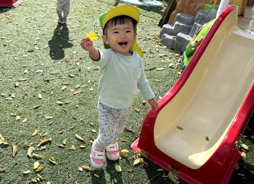| | | | + 戸外あそび ☆子育てサークル | | 2025/11/19 |  | 今回は戸外あそびをしました。天気も良かったので青空の下、みんなのびのびと遊んでいましたよ(*^-^*)アンパンマン遊具で遊んで、電車を見て、空を見上げてヘリコプターを見つけて、お友だちと一緒に葉っぱをふわ〜っと散らして、シャボン玉をおいかけて、葉っぱのお店屋さんをして、園のお友だちと一緒に遊んで…。いっぱいいっぱい遊んだね(*^-^*)