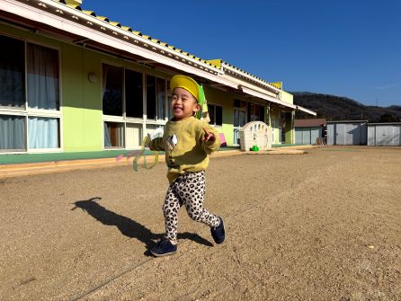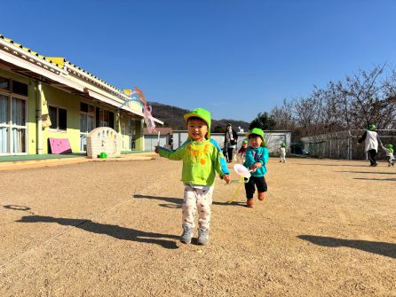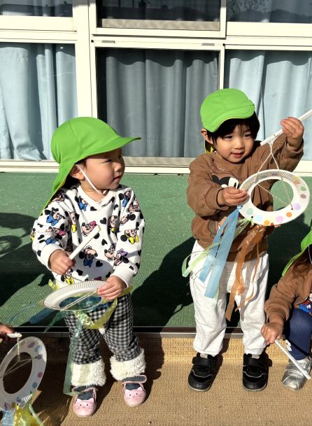 次回は1月21日 「絵本」です。絵本に触れ楽しみたいと思います。他のあそびもできますので遊びに来てくださいね。 | | | | + 凧あげしたよ♪あひる組 | | 2026/01/13 |  | あけましておめでとうございます!今年もよろしくお願いいたします*^____^* 先日自分で作った凧を一人ひとり持ち、凧あげをしました。嬉しそうに先生からもらい、一生懸命走って凧あげを楽しんでいましたよ♪みんなとっても笑顔でかわいかったです! また、色々なあそびをしてみようね〜! n.m | | | | + うさぎ☆総合遊具でできるものが増えたよ!! | | 2026/01/09 |  | 先日、総合遊具のトンネルのすべり台が使えるようになりました♪ 約束事と使い方を伝えたら、みんな上手に守って遊ぶことができていましたよ(^^♪ 網のところで友だちが登るのに時間がかかっても抜かすことなく登りきるまで待ってあげる姿もありました(^_-)-☆ 怖がる子もいなくてたのしんでいましたよ!! また、トンネルのすべり台をしようね☆