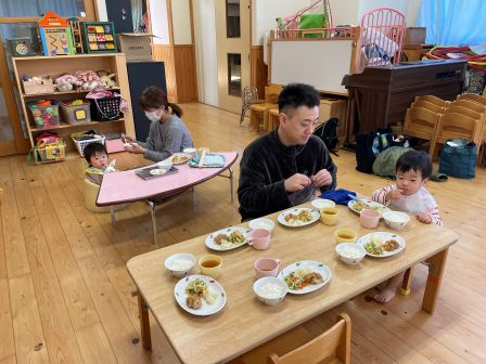 次回は1月14日 クラスあそび・給食試食会です。クラスあそびは0,1,2歳児クラスに入って園のお友だちと一緒に遊びましょう。その後は給食試食会があります。予約された方のみの参加となりますのでご了承ください。 | | |