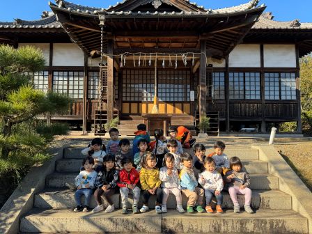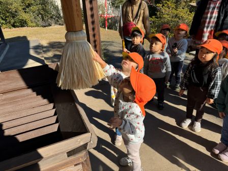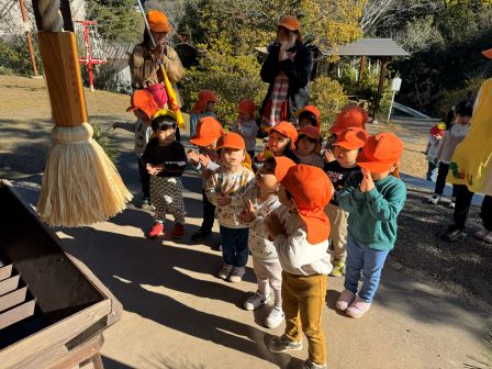 次回は1月28日 製作「節分」です。鬼のお面を作ります。製作後も自由あそびができますので遊びに来てくださいね! | | | | + 初詣に行ったよ★りす組 | | 2026/01/19 |  | りす組みんなで初詣に行きました。 園から神社まで友だちと手を繋ぎ、交通ルールを守ってしっかりと歩き、長い階段を上り、無事みんなで本殿までたどり着く事が出来ました。 その後お当番さんに代表でお賽銭を投げてもらい、みんなで神様にお祈りしました。 今年もよろしくお願いします。 S,M | | | | + クラスあそび・給食試食会☆子育てサークル | | 2026/01/14 |  | 今回はクラスあそび・給食試食会をしました。 クラスに入って園のお友だちと一緒に遊びました。園の元気いっぱいのお友だちに少し圧倒されながらも、おままごとや外あそびを楽しみました(*^^*)給食試食会は園で食べている食事量を知ったり、お友だちの食べる姿を見たりしながら美味しく頂きました。お家の方も美味しそうに食べてくれましたよ♪