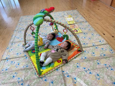 | | | | + 「絵本」☆子育てサークル | | 2026/01/21 | | 今回は「絵本」でしたが、小さいお友だちの参加だったのでベビージムマットで遊びました。玩具がゆらゆら揺れるのを見て、かわいい手足をバタバタして喜んでくれましたよ♪お母さんとも子育てのお話がたくさんできて良かったです(*^-^*)