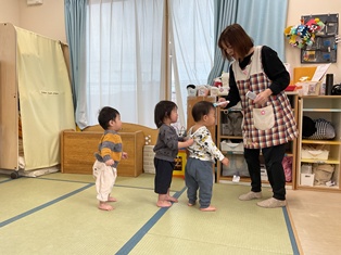 2026/01/29 かもつ列車 あひる組さんの真似っこしてひよこ組さんでも貨物列車の発車オーライ☆体温計駅まで歌に合わせてノリノリで進んでいきましたよ💕