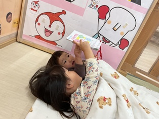 絵本を読んでもらっているお友達を発見🌟