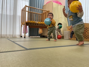 先生の投げたおボールを追いかけたり…