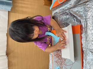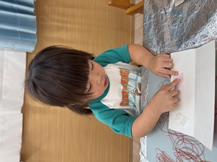 2025/10/16 のりをつかったよ! 初めてのりを使った製作を行いました!まずはのりの使い方を知りいざ実践!!のりをぬって貼るという動作がごちゃごちゃになったみたいで塗るのか貼るのかわからなくなっていました・・・☆彡でも、頑張って可愛い作品ができていましたよ!これからもたくさんのりを使って練習していこうと思います!!!!