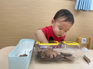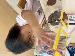 2025/10/16 落ち葉で遊んだよ 散歩で拾った落ち葉を使ってポットン落としをしたよ!ペットボトルの穴に入れたり出したり…小さな飲み口からも入れようと頑張るひよこ組さんでした!低月齢のお友だちはお口に入れないように先生の見守りのもと触ってみたりにおいをかいでみたり♪先生がくるくるまわしてくれるとなになに!?と興味津々でしたっ🥰その後は画用紙の落ち葉で落ち葉広い遊び!1・2・3~の掛け声でひらひらと落ちてきたね🍂