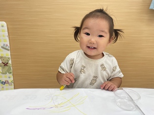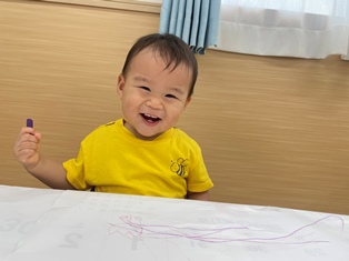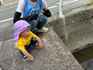 2025/10/15 散歩におえかきに お絵描きをしたよ♪先生の真似っこして描いてみると…わ!画用紙に色がついたね!全身を使ってびゅーんっとなぐり描きを楽しみました!その後はみんなで散歩にレッツゴー!先生と手を繋いで右左の指差し確認するお友だちも😲溝や花壇を覗いては先生とのやりとりを楽しんでいますよ💛蝶々やメダカをいっぱい見たね!