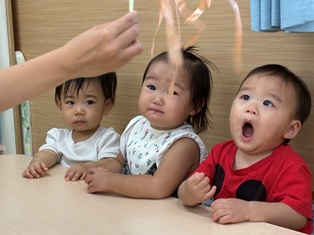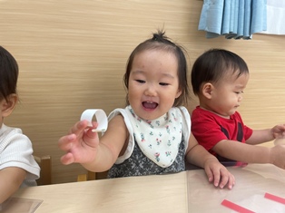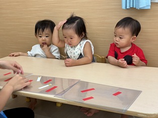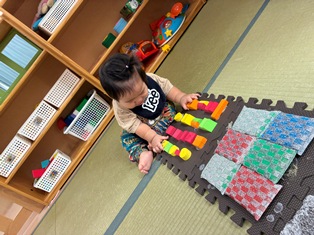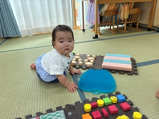 2025/10/01 今日の活動 10月になりましたね🌟今月もたくさん遊んで楽しく過ごそうね♪ひよこ組さんの今日の活動は…あさの会をみんなでした後先生のシアターを見たりシール剥がしの説明を聞いていざ活動スタート☆彡指先を使ってガリガリぺりぺり…はがれた時には嬉しそうなこの表情(^▽^)/低月齢のお友だちは完食マットで遊んだよ!ふわふわ、ちくちく、ざらざら…色んな感触に興味津々♪