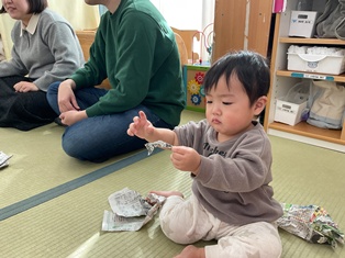 いろんな音や感触にわくわくにっこりなおともだち🌟