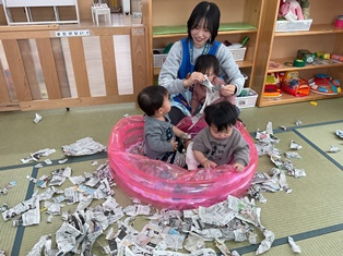 「しんぶんしあそび」です😃☆