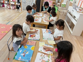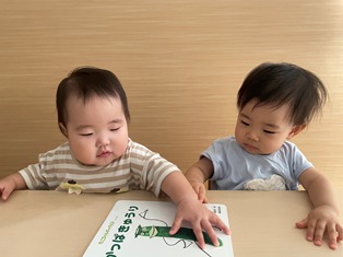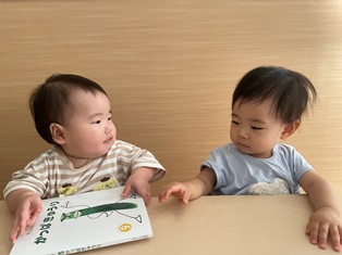 一緒に座って絵本を…