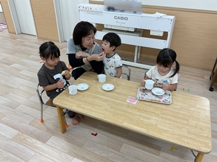 給食やおやつを食べたり