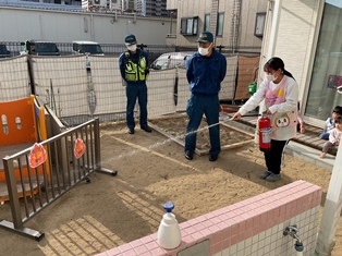 避難後は園に戻って水消火