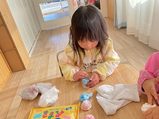 粘土をコネコネ