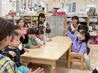 2026/02/27 お気に入りの絵本 【いないいないばあ あそび/きむらゆういち作】がだいすきなひよこ組さん💕先生の声かけに合わせて一緒に「ばあ!」最後のあっかんべー😝も上手ですね!!!!