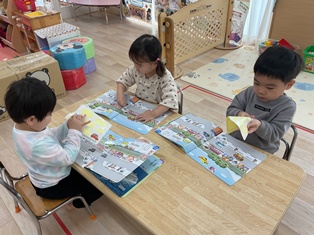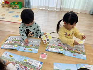 2025/12/02 月間絵本🚙 12月の月間絵本をみんなで見ていったよ!初めのページは乗り物!!乗り物の写真が見えると「ひこうき!!」「タクシー!!」などなど何の乗り物なのか教えてくれたよ☺手洗いの仕方についてのお話もあったのでみんなでどうやって洗うんだったかなぁ~??と再度確認をしていきましたよ🤔シール貼りは乗り物のシールで上手に電車のシールを連結させていました🚃