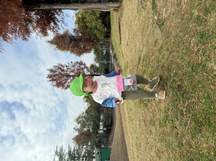2025/12/02 2自分のバッグを持って♡ シールを貼った自分のバッグを持っておさんぽに・・・👣落ち葉やどんぐり木のみを入れて嬉しそうにしていました!「せんせーみてみて~!」とバッグの中からお気に入りを教えてくれました!